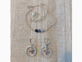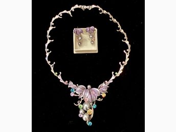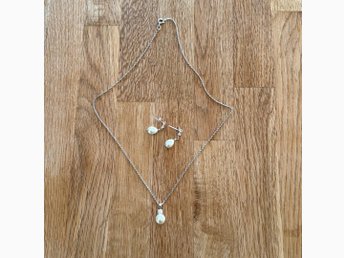 925 Silver halsband och örhängen med sötvattenpärla och stenar