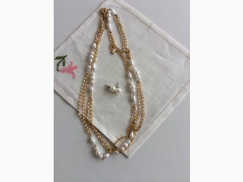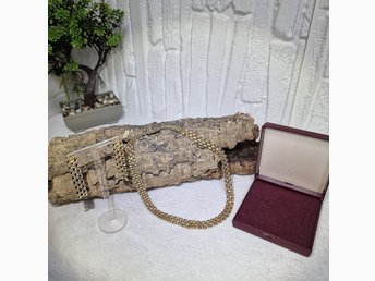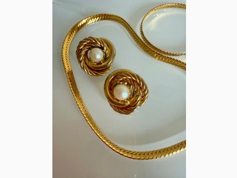 Vintage smyckeset snake chain halsband 45 cm + pärlörhängen guldton