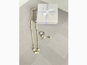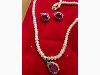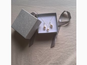 Nytt! Pärlset i silver med halsband och örhängen med äkta sötvattenspärlor