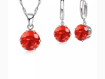 Silver Smyckesset - Halsband & Örhängen - Orange CZ Kristall - Silverpläterat