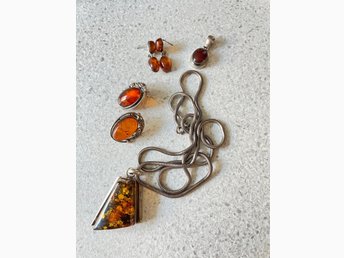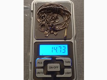Äkta Silver 830,925,Skrot, Smycken Parti,Halsband, hänge,Örhängen, ri 14.73g