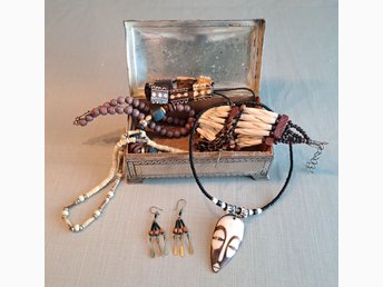 Äldre Smyckesskrin med Afrikanska vintage smycken