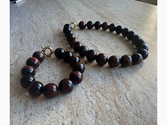 Set halsband, armband och örhängen med av jadepärlor/träpärlor/metall/läder.