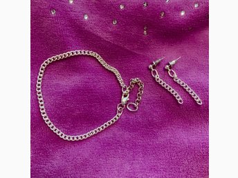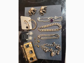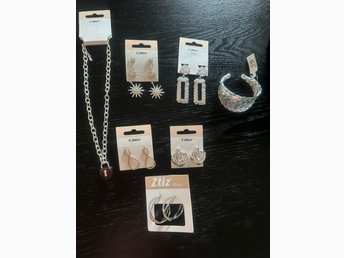 Nytt smyckeset armband hängande örhängen kedjor silverfärgat snygg silverton