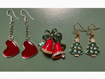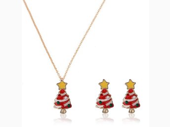 Fint Guld Smyckesset till Jul - Halsband & Örhängen med Röd Julgran - Julklapp