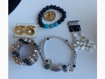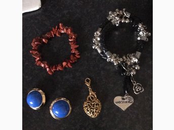 Div Bijouterier, 2st armband, 1st hänge, 1par Örhängen (clips). Fint skick!