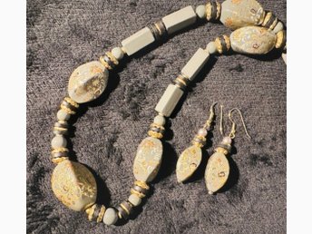 Orientaliskt vintage smyckesset - halsband & örhängen, handmålat Retro