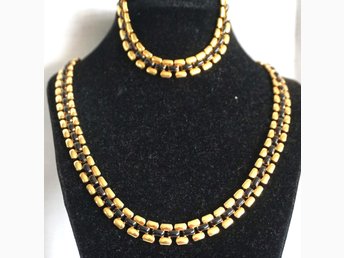 Vintage Gold Plated Necklace & Earrings Set Mid Century Tank Link Jewelry
