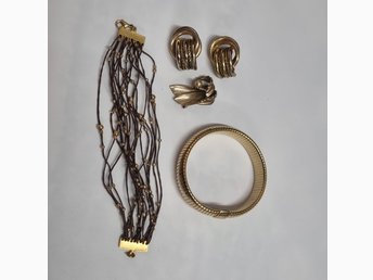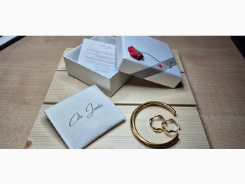 Guldfärgade Smycken Set - Armband, Örhängen och Brosch