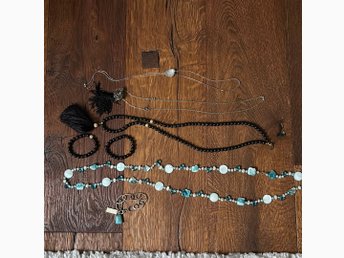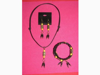 (Smyckes paket) flertal fina svarta/guld halsband & armband med fina hängen