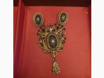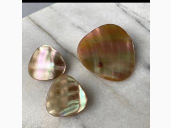 Vintage smyckeset från ca 1950-tal – Brosch & clipsörhängen snäckskal pärlemo,