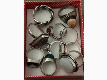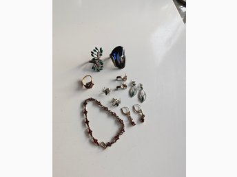 Silversmycken i fint skick, ringar, armband och örhängen. Stämplar på allt.