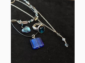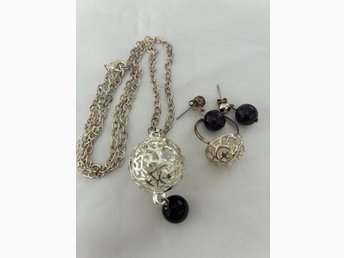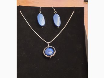 Silver Smyckesset - Halsband & Örhängen - Mörk Turkos Kristall - Silverpläterat