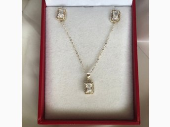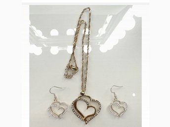 Smyckesset guld, stenar, guldig, hjärtan, hjärthalsband, hjärtörhängen