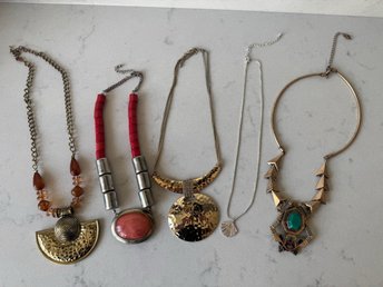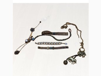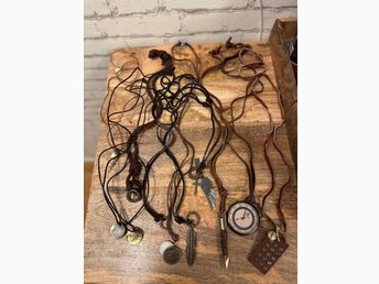 (Smyckes paket) fina metall/läder halsband med fina hängen (nyskick)