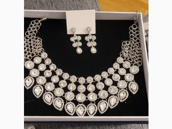 Fint smyckeset flicka / halsband , örhängen och hårspänne