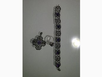 Vintage Smyckesset med Ametist - Armband, Ring och Hänge