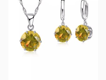 Silver Smyckesset - Halsband & Örhängen - Gul CZ Kristall - Silverpläterat