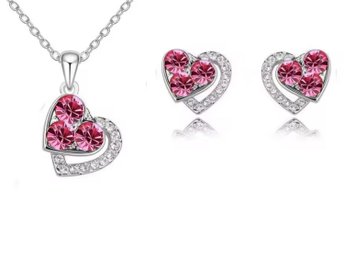 Vit Guld Smyckesset - Halsband & Örhängen - Hjärta & Rosa Kristall -Guldpläterat