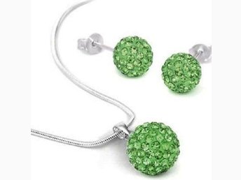 Silver Shamballa Smyckesset - Halsband & Örhängen - Grön Boll - Silverpläterat