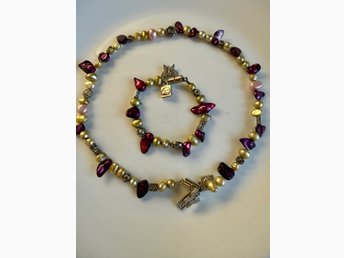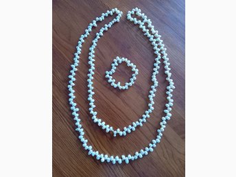 Exklusivt smyckesset – pärlor & snäckskal – halsband 46 cm + armband -