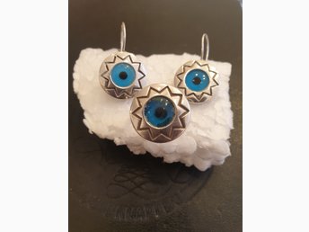 Vintage, Silver Ring och Örhängen Set med ögat.