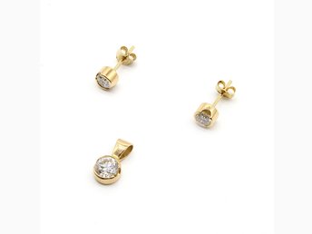 Smyckesset i 18K guld med diamanter - örhängen och ett hänge (ca 0,9ctv)