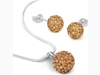 Silver Shamballa Smyckesset - Halsband & Örhängen - Brun Boll - Silverpläterat