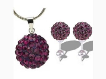 Silver Shamballa Smyckesset - Halsband & Örhängen - Lila Boll - Silverpläterat