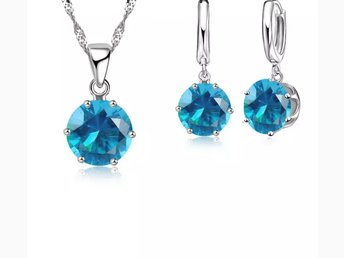 Silver Smyckesset - Halsband & Örhängen - Turkos CZ Kristall - Silverpläterat
