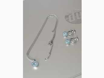 Silver Smyckesset - Halsband & Örhängen - Ljus Turkos Kristall - Silverpläterat