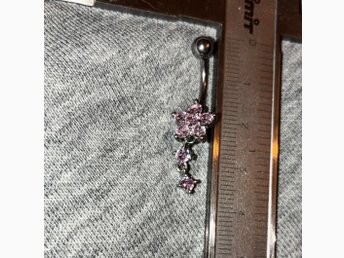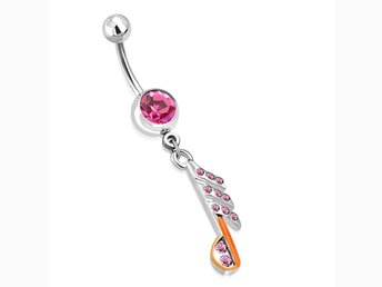 Navelpiercing Piercing i Stål 316L i Silver Färg - Not med Rosa CZ Kristaller