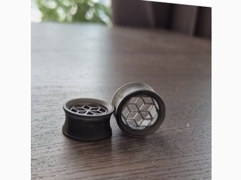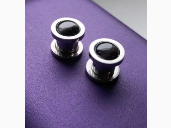 Silvriga & svarta tunnlar för töjda öronhål 8 mm goth töjsmycke tunnel