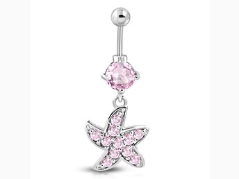 Navelpiercing Piercing i Stål 316L i Silver Färg -Stjärna med Rosa CZ Kristaller