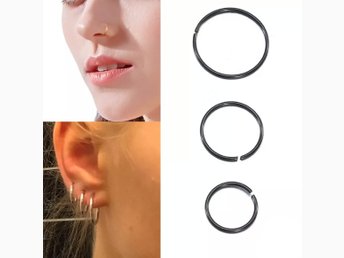 3 st Piercing Ring Näsring Näspiercing i Svart Färg - 7, 10 & 12 mm