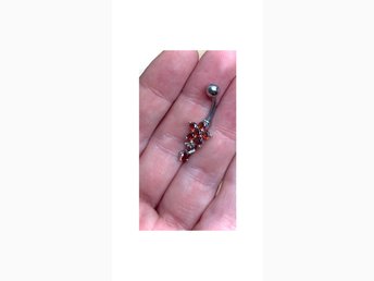 Navelpiercing med rosett och hängande röda stenar i rostfritt stål