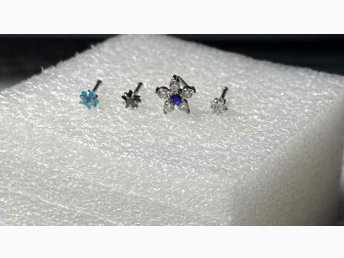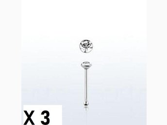 Obs 3 st. Näspiercing i silver med 2 mm. rund vit strass (k)
