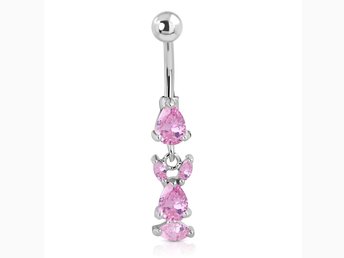 Navelpiercing Piercing i Stål 316L i Silver Färg - Kanin med Rosa CZ Kristaller