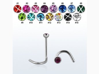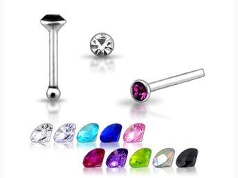 1st.Näspiercing i Sterling silver med 2mm. strass sten