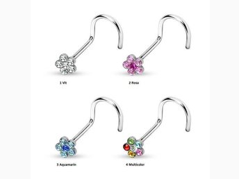 Pack 4 Skruvbara blomformade näspiercing i 316L stål