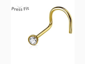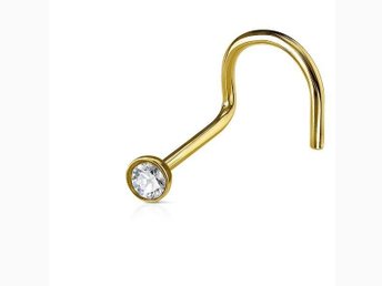 1 st. Skruvbar Guldpläterad näspiercing i 316L stål med zirkon