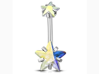 Navelpiercing i Stål 316L i Silver Färg - Stjärnor med Skiftande Kristaller