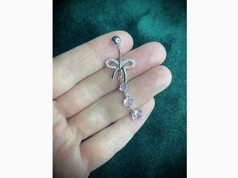 Silverfärgad Navelpiercing med rosa stenar och hänge