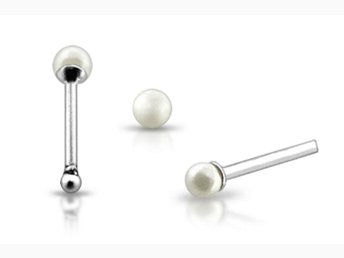 1 st. Näspiercing i silver med 2 mm. vit pärla (k)