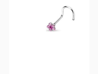 Skruvbar blomformad näspiercing i 925 Stilver med rosa cz