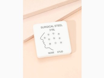 9st näspiercingar med stenar i olika färger