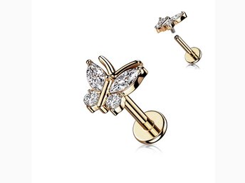 Gängad Fjärilformad Tragus/Labret Guld IP-316L stål med CZ 8 mm