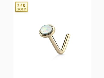 REA__1 L-formad näspiercing i 14 karat guld med 3mm rund vit opal