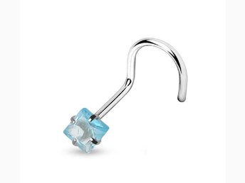 1Skruvbar näspiercing i 316L stål med 3mm fyrkantig Aquamarin CZ