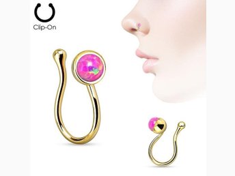 Clip On Guldpläterad "fake" näspiercing med Rosa Opal